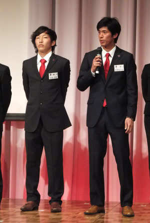 社長が「今年活躍する選手がいます。誰でしょう!」と場内に振ると「仲間選手」とか「大迫選手」の声があがるも「惜しいですね」「違いますねえ!」のやりとり。
