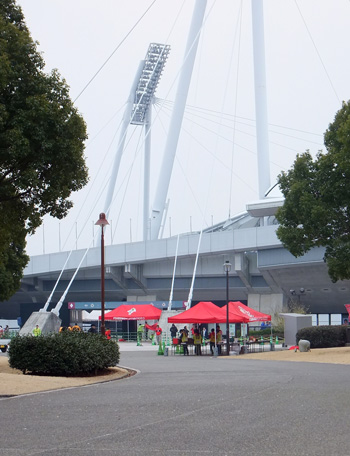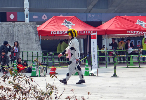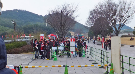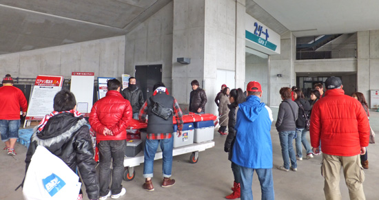 幕張りを終えてSさんとご飯調達にアウェー側からスタグルメ広場に出ようとするところで意外な対応が待っていました。
