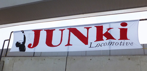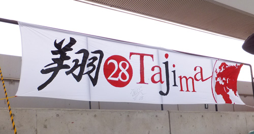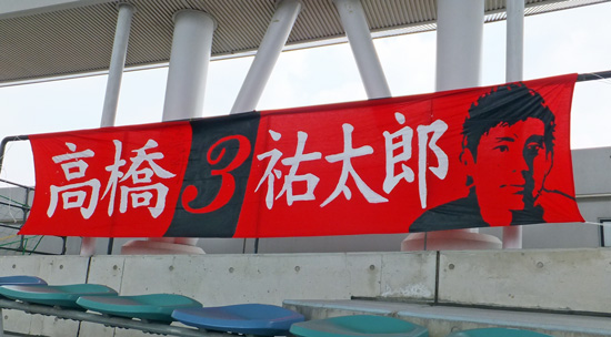 入場してすぐゴール裏のいつもの場所に行き、応援団の楽隊の場所など確認してから幕張りのお手伝い。