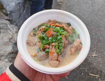 かんしょやさんのホルモン味噌煮込み。美味しいんです!たっぷりの刻みネギと七味でホカホカ♪