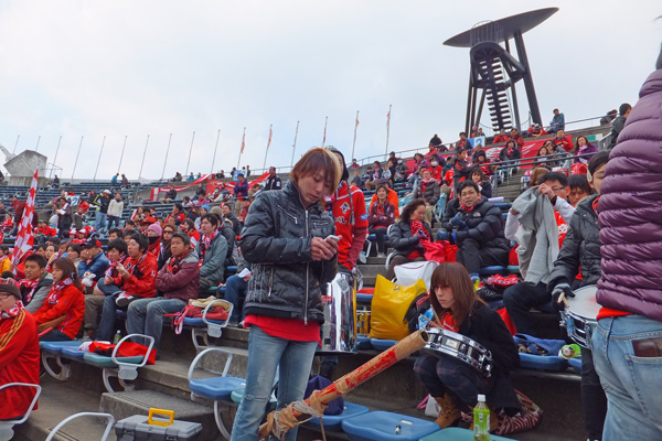 スタンドで失望と煽りの声が大きくなる中、それでも必死にコールするゴール裏応援。