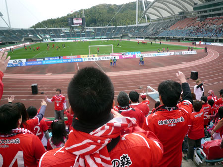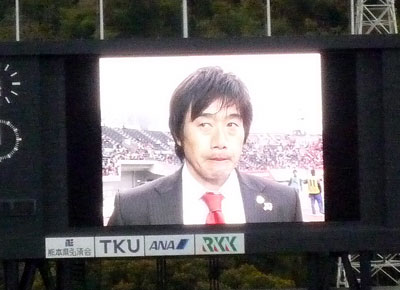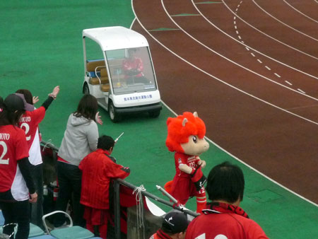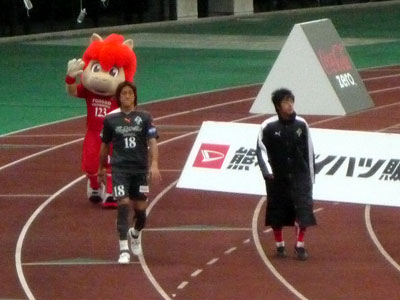 ロアッソゴール裏に来るまえに岐阜サポさんとこに堂々と回ってサインボール投げてたけど、あの状態でのHTですよ。投げ返されたりしなかったのだろうか(^^;)。