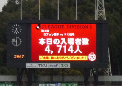 ホーム2戦目にして「ガラガラの観客席」の洗礼を受けちゃいましたねー(^.^;) まあ、まだロアッソはTKUの日のタレント連中にあっさり負けちゃうレベルの浸透度なんですよね。本当にごめんなさいm(_ _)m 実は既存の企業力を背負わない叩き上げチームは、自分たちの実力でファンを獲得し人気をアップしていかなきゃなりません。