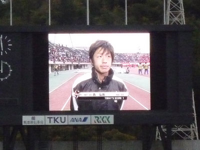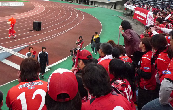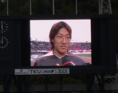 さすがベテランですね。よどみなく勝利を喜ぶとともに「一人でも多くのサポーターを」とのご希望です。そう。選手自らが多くのサポーターに直接言葉をかけられるチャンスってのはホーム勝利後のこの時が一番!