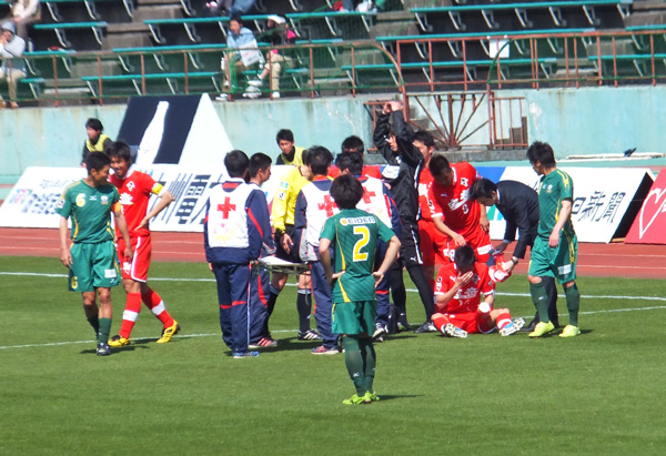 この試合は、途中でタクちゃんが倒れるタケトミくんが倒れる。サポはひやひやしながらも止めることなくコールしながら、立ち上がるのを待ちましたよ。