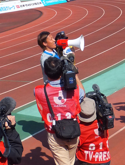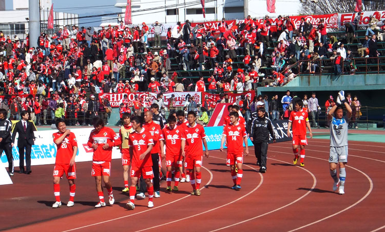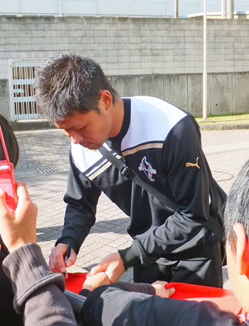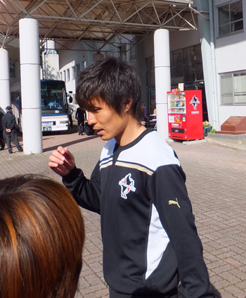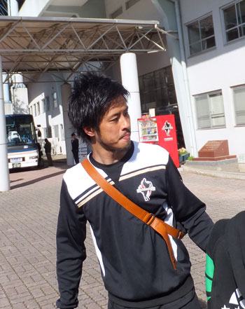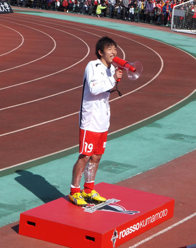 1年前、たしか大震災による中断後のリーグ再開試合でJリーグ初出場初ゴールして、ゴール裏でサポーターに自分のコールやってもらってダンス踊ったロアッソ最初の選手が彼でした。(説明長い(^^;))