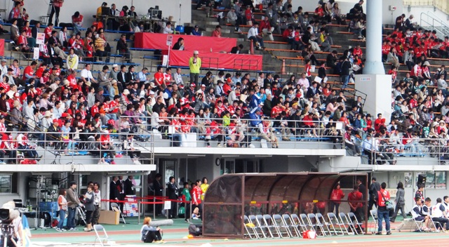 珍しくS席風景。柱の前以外は見づらいのよねー。政令指定都市のスタジアムとしてはここも恥ずかしい部分です。何とかしてください。