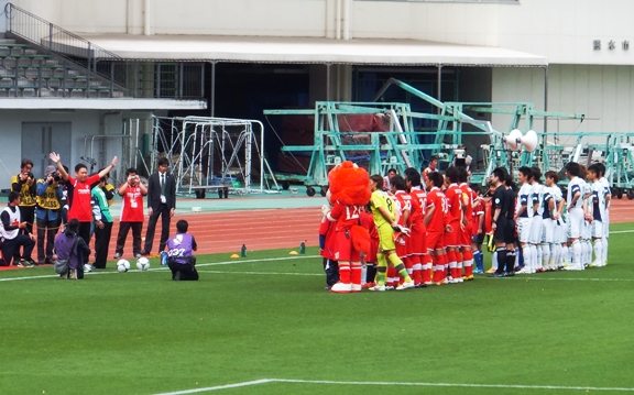 試合前のご挨拶。このとき、実はそれほど緊張感を感じられなかった赤馬衆です。