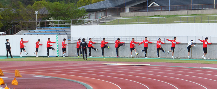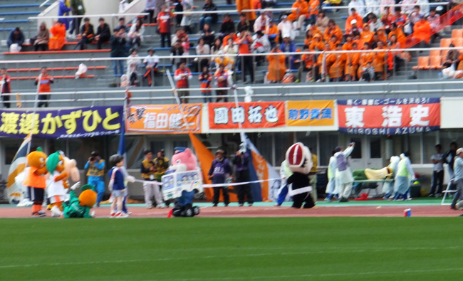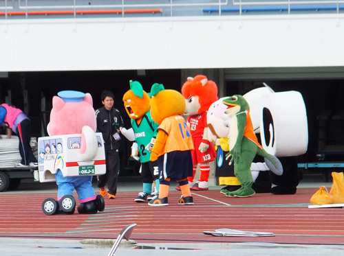 選手集合。他はともかくかつお人間くんとタルトくんが走れるのか不安。