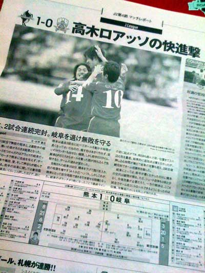 MOMはヒロノリくん。このライターさんも岐阜のハシモトくんの交代は「?」みたいな書き方です。熊本では不発だったけどものすごい戦術なのかもしれないね(^^;)。