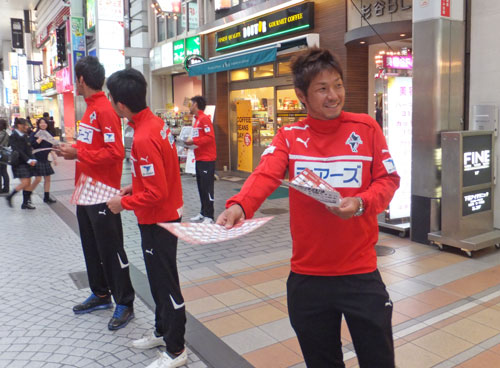 そして今日はサポーターが協力して、びぷれす広場で14時からビラ配りですよー!