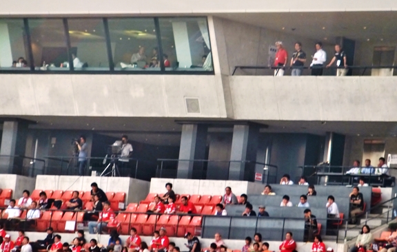 見るともなくメインスタンド上部のVIP席を見ると、みんな身を乗り出してました。これも前までとは違うなあと(^^;)