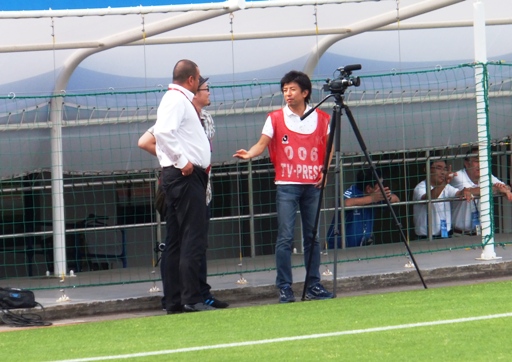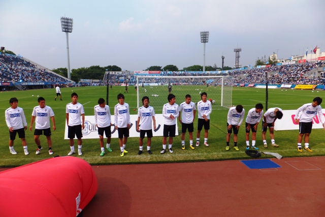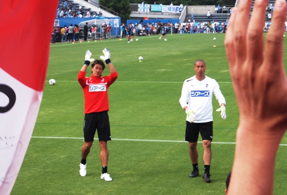 ピッチの状態を確かめたあとは、横浜FCの選手と旧交を温めていました。こういう光景が見られるのもアウェー戦ならではです。