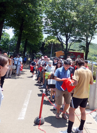 練習終了でクラブハウスに戻る選手の元へはファンが集まります。