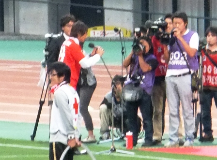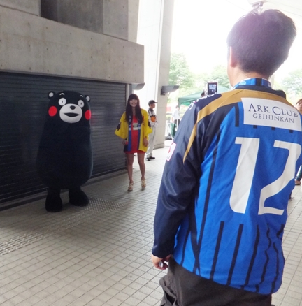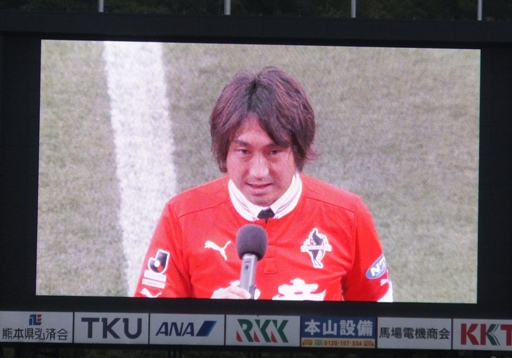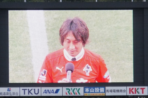 ここでサッカーがしたい選手が迎えられて挨拶をしてくれている。ロアッソサポーターは双手を広げて歓迎するだけです。
