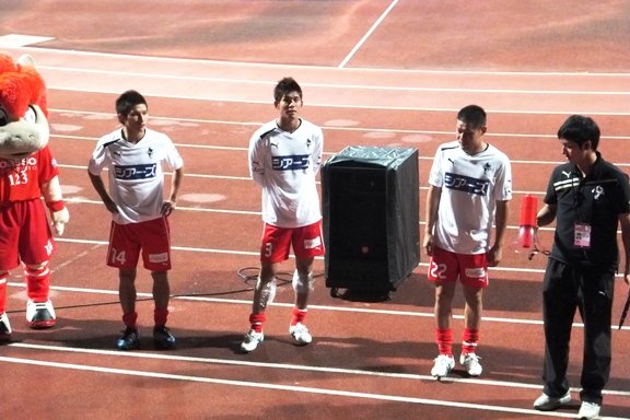 その後の彼の言葉で、横浜の試合終了後に挨拶に来た選手たちに、ゴール裏からは非難する声よりも、悔しさを共有したからこその「ホームで勝とう!」「まだまだ!がんばろう!」という激励の声の方が圧倒的に大きかったことが彼の心に残ったんだと知って、こちらも本当に嬉しかったのでした(^_^)