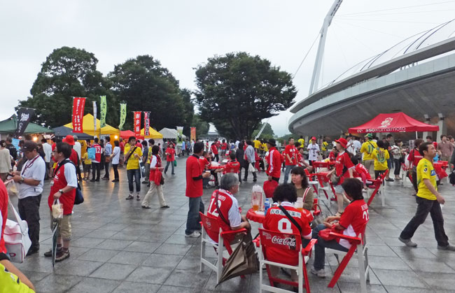 浮かれていたら、マジで食事する時間がなくなってしまう。というのでゴール裏席へ脱兎!