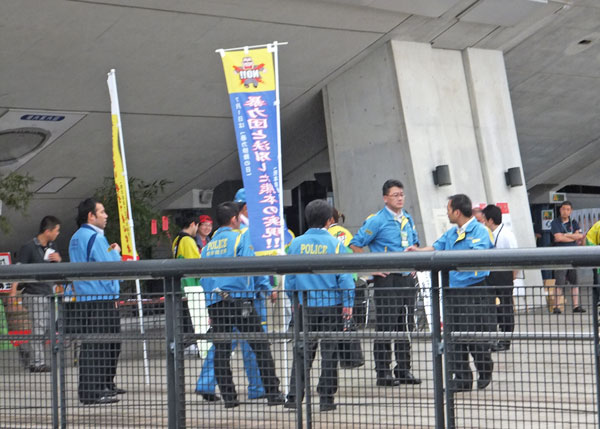 待機列に並んでたらゲート内にわらわらとおまわりさんが集合。