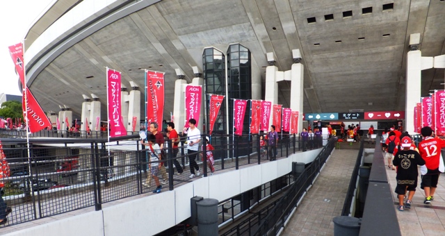 スタジアムとの行き来の陸橋は行きと戻りで分かれています。(今更だけど)
