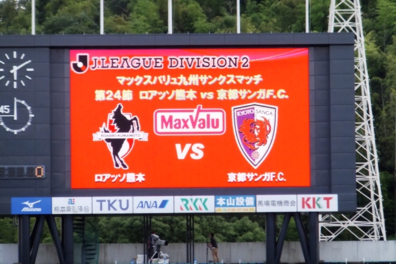 そしてJ2第24節・ロアッソ熊本vs京都サンガの試合。選手は喪章をつけ、スタジアム全体で今回の水害で被災され亡くなられた方々への黙祷から始まりました。