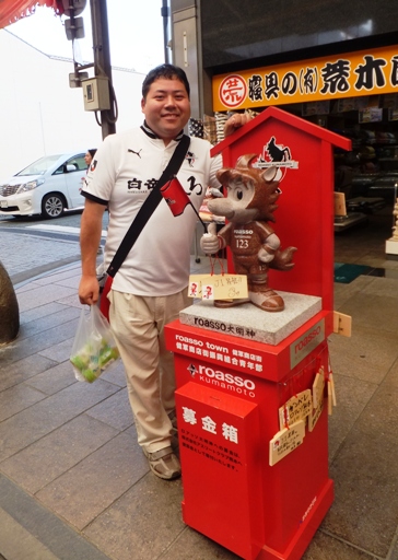 まずはサポ仲間と存在確認のためにロアッソ大明神とツーショットに収まりました。