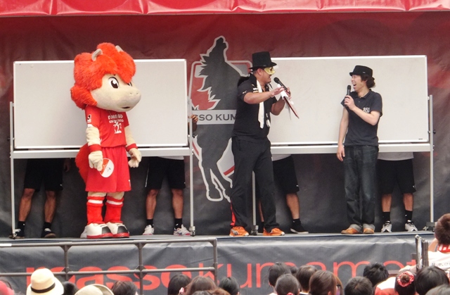 ロアッソにまつわる雑学クイズで5番くんが司会を務めるという珍しい図。