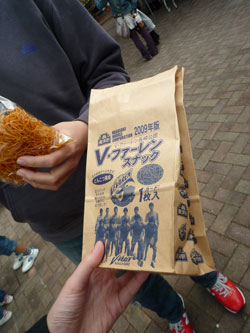 食べた方によれば「ベビースターラーメンに似てる」そうですが、これに野菜餡掛けたら皿うどんですよねー(^^;)。
