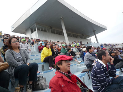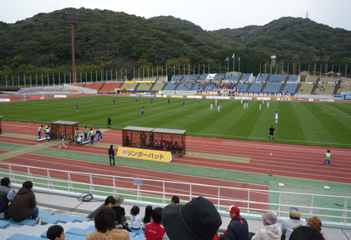 長崎県立総合運動公園陸上競技場。雰囲気は水前寺競技場にちょいと似てます。