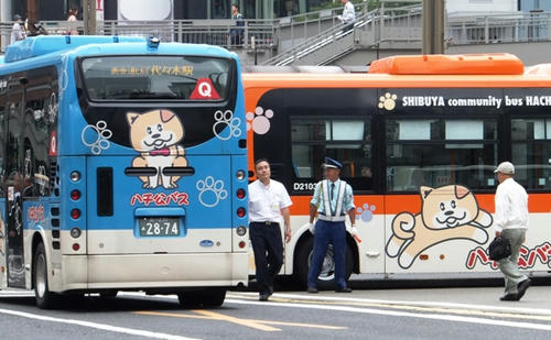 コミュニティバスなのか、かわいいハチ公の小型バスがたくさん走ってます。