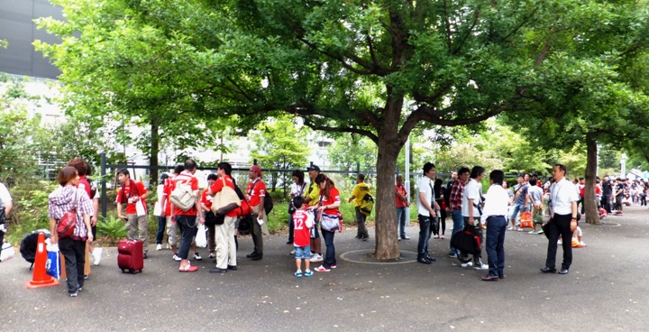 ふと気づくと、アウェー待機列がすごい長さになってます。ここ東京だよね?!