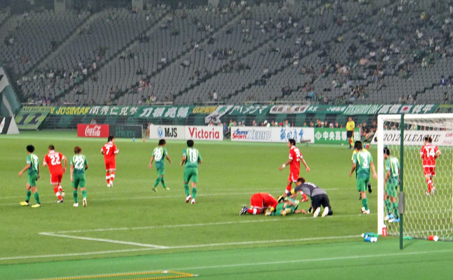 たぶん、あちらもこちらも。それどころかJリーグの試合でこういうシーンは多分めったにないんじゃないでしょうか。