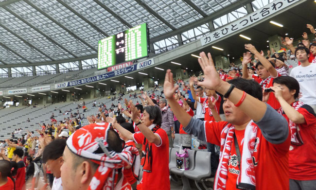 悔しいけどここで下向くヒマなんてありません。失点した瞬間から次のチャンスを狙うチャントに声を張り上げるのが赤馬サポの後押しなんです。