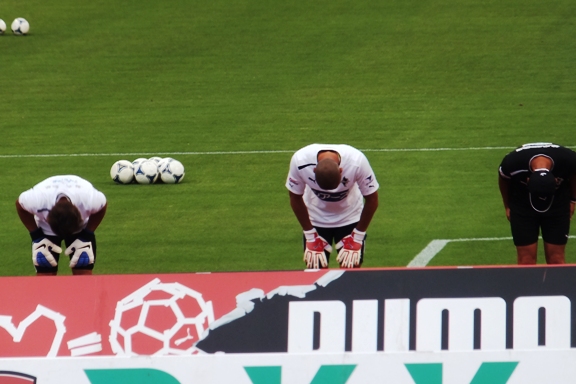 試合前練習では徳島の選手にガン見されておりました。
