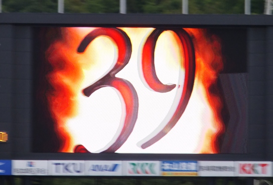 その39番くんの、ホームスタジアム初見参にして、オーロラビジョンで初めての選手紹介。