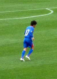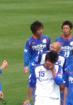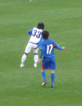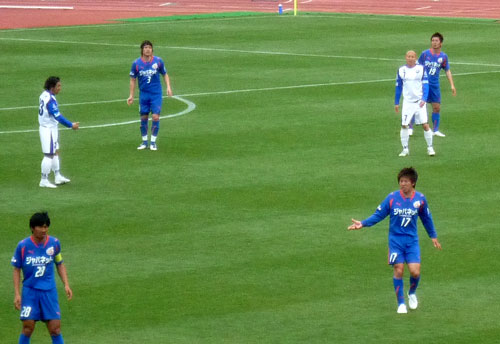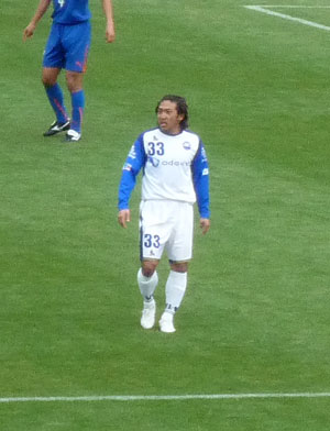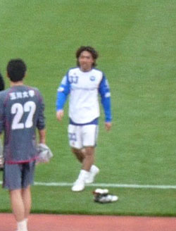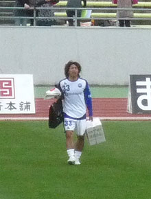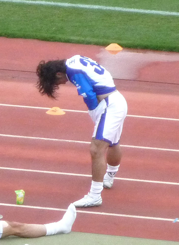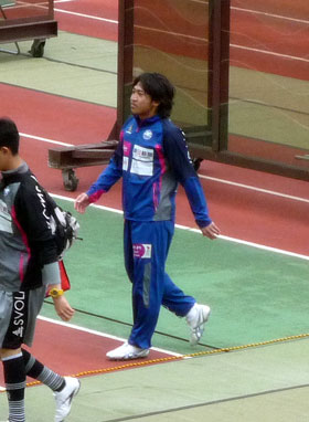 これもロアッソにいたときと同じ。本当にガラスの膝を壊さないようがんばってる。Jリーグに比べて練習環境がどうなのか心配……。