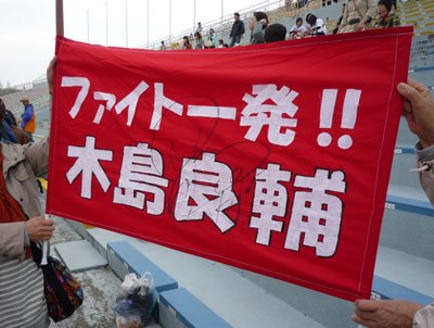 町田サポ席の上部に見えた「町田の木島」弾幕。