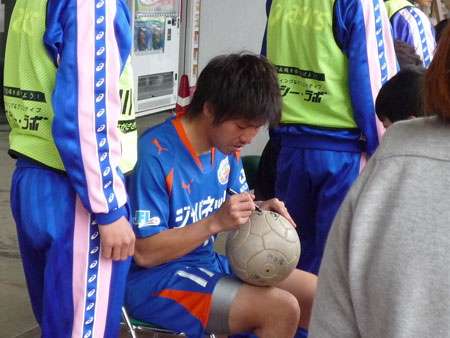 でも試合は完封されちゃって、試合後はピッチから早々に姿が見えなくなりました。スタンドからキジさんに声かけたりしてスタジアムを出たら、こんなところでサインしてました。