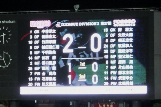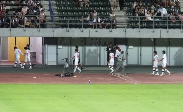 いつのまにか日は暮れて照明に映えるピッチ。