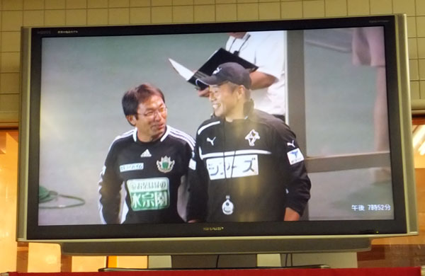 試合後。監督同士はこの化かし合い談笑ですよ。楽しいなあ。