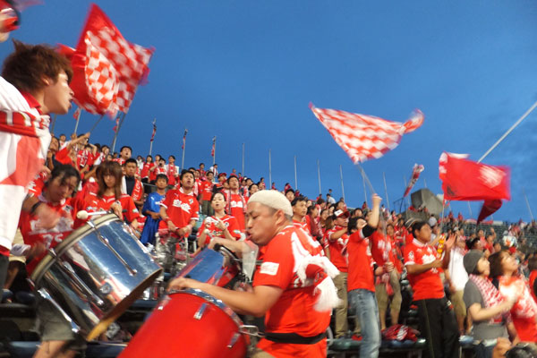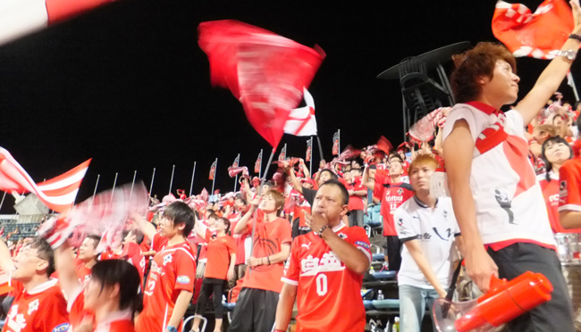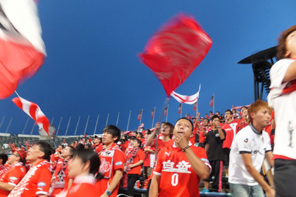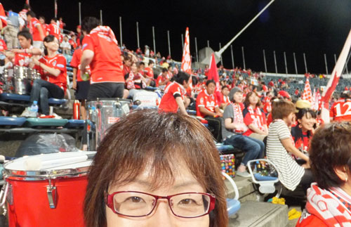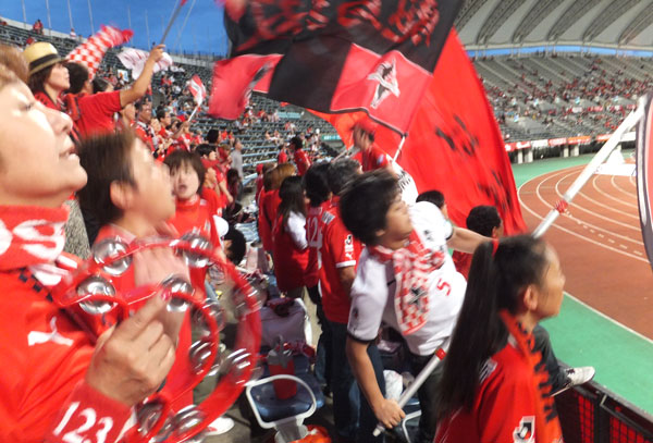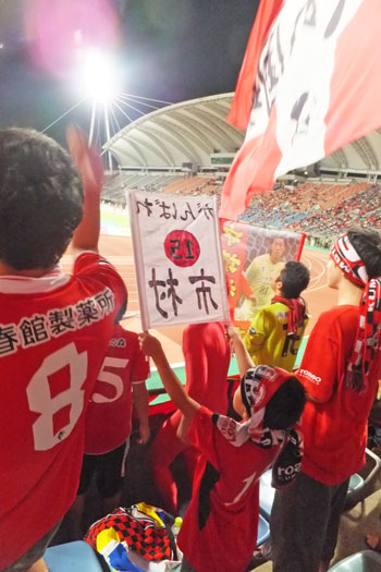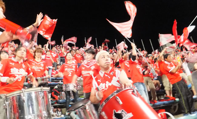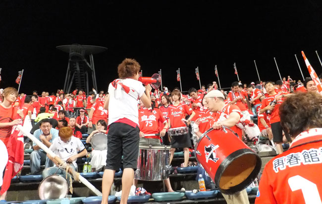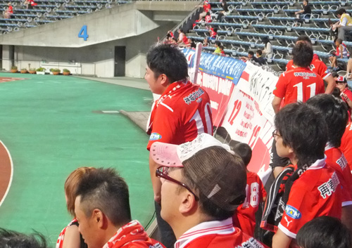 私がメインやバクスタから試合そのものが見づらい場所であるここに移ってきたのは、一体感を持って赤馬衆の後押しをしているオーラが、全員から同じリズムで噴出するのをどっぷりと体感できるから。