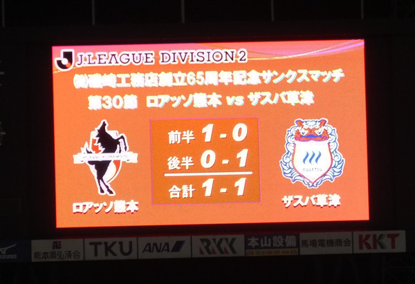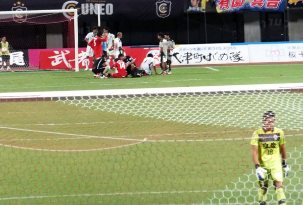 草津が意地を見せて攻め込まれゴール前の混戦から、ねじ込まれて同点。