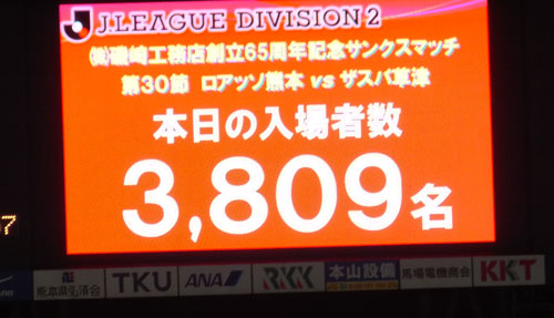本日の入場者数。こういう日時の試合で5000は行きたいよね。実際行けてたシーズンもあったはず。