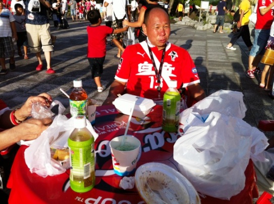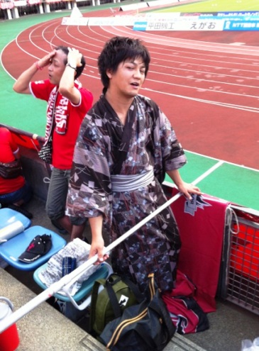 それでも屋外競技サポは西日に負けることなくいつもどおりの腹ごしらえ。T田さんの日焼けっぷりが頼もしいです(笑)。