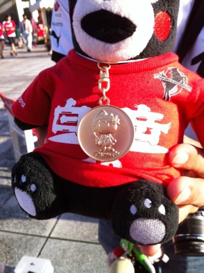 くまモンは松本市キャラのメダルかけてもらってます。このキャラは前半戦の水前寺に来ていましたね。