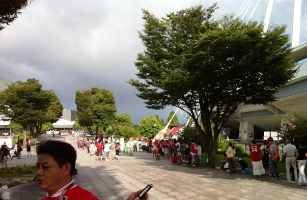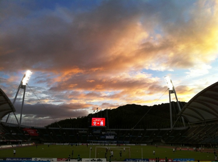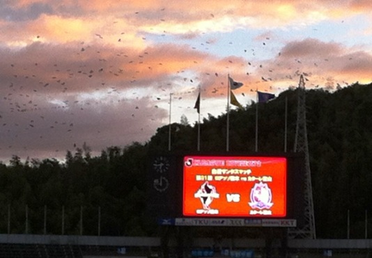 ゴール裏のコールで鳴り物が響き渡るたびにびっくりしてねぐらからキャーキャー飛び立つ鳥さんたち。