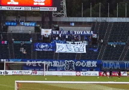 まずそれと戦っているカターレ富山には、本当はJ2からいなくなってほしくはありません。ロアッソ熊本サポの自分にとって大切なライバルだからこそ、この文字は胸に響きました。