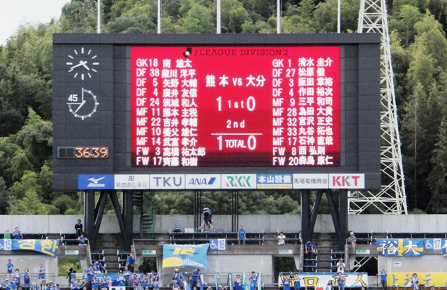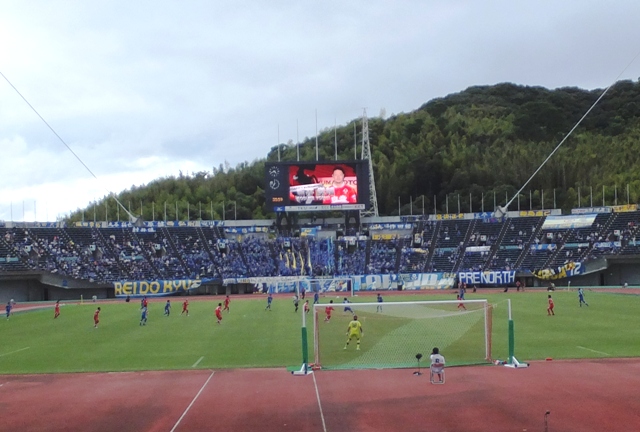 なにしろ台風が九州西側を通過中。スタンドもピッチも強風に煽られるゲームとなりました。