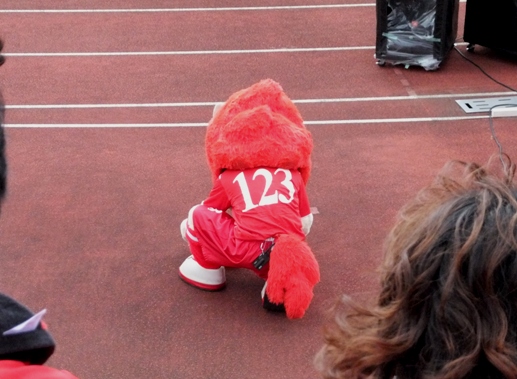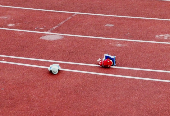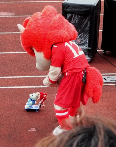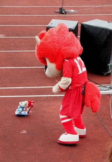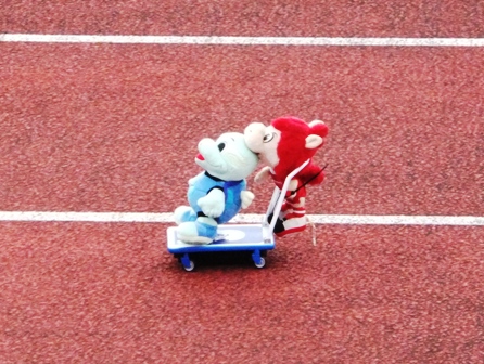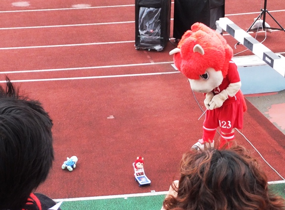 子馬がラジコンいじってる間にバクスタ前ではマスコット対抗徒競走。どうやらぶっちぎりでくまモンが優勝だった模様。
