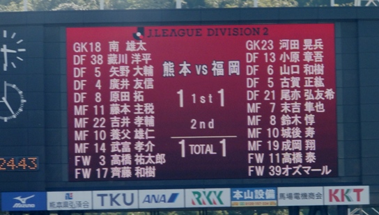 しかしそのリードは自分たちの油断にも繋がるんです。最初からガツガツゴールを狙ってきてた福岡の外国人FWにバックパスを狙われてあっさり同点(-"-)