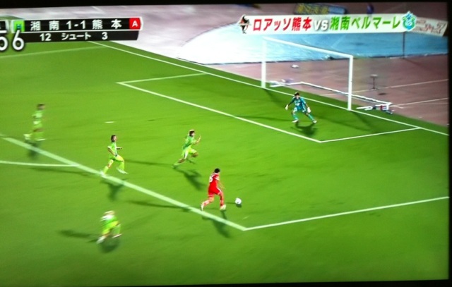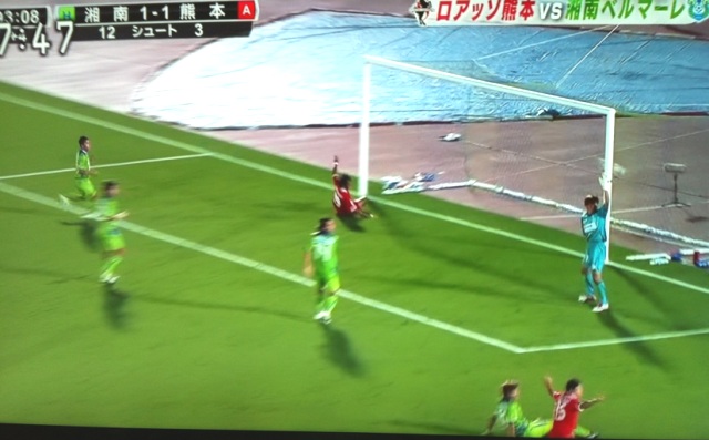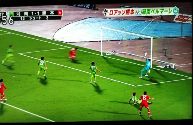 そのまま後半に入ったけれど、今度はホームアドバンテージを背負って湘南に押し込まれ、PK献上。なんだそれ!と怒っても判定は覆らず、同点にされる。